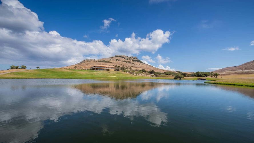 Wenn Sie auf dem Parkplatz des Golfplatzes ankommen, werden Sie von einem großen, modernen Clubhaus beeindruckt sein. Es befindet sich auf einer erhöhten Position und bietet einen Blick auf die Ostseite der Insel sowie den Atlantik am Horizont. Selbst wenn Sie nicht golfen, ist das Clubhaus ein großartiger Ort, den man wegen des Essens, der Getränke und der Aussicht besuchen sollte.