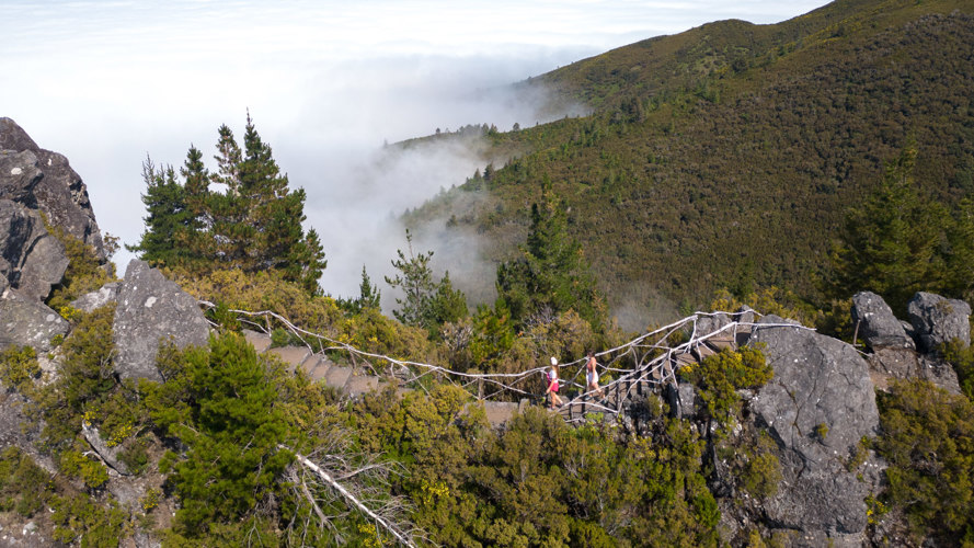 Diesen Spot hat mir tatsächlich ein Einheimischer empfohlen - und wow, ich bin so froh, dass ich hingefahren bin. Er hat mich komplett umgehauen! Du fährst die Berge oberhalb von Santana hoch (Richtung Pico Ruivo) und läufst dann vielleicht 200 Meter vom Parkplatz - und plötzlich stehst du über den Wolken mit diesem völlig verrückten Panoramablick. Die Treppen sehen hier aus, als würden sie direkt in den Himmel führen. Es fühlt sich fast unwirklich an - besonders, wenn der Nebel aufzieht und das Licht genau richtig fällt.