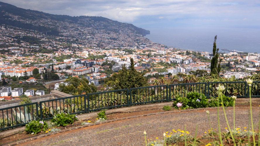 Ein echter Geheimtipp im Norden Madeiras: Vom Aussichtspunkt Beira da Quinta hast du einen weiten Blick über das Tal, die Stadt darunter und den Atlantik in der Ferne.
