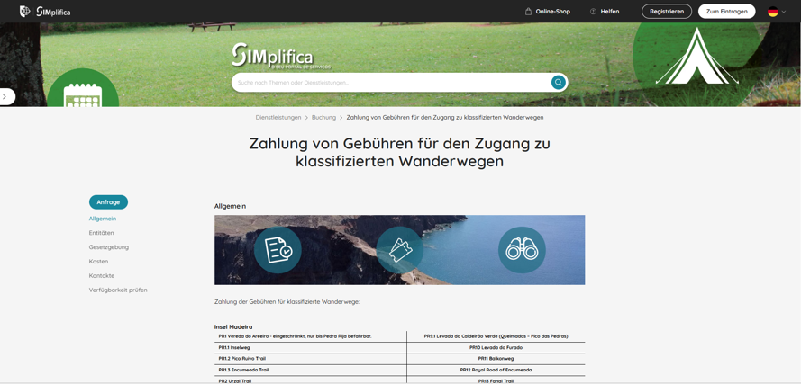 Reserviert wird ausschließlich über die offizielle Plattform SIMplifica, das Serviceportal der Regionalregierung von Madeira. Dort wählst du deinen Wanderweg, das Datum, die Eintrittszeit und – falls erforderlich – bezahlst du direkt online.