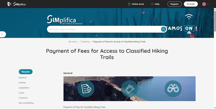 - Access the SIMplifica platform - Go to the portal and select the service for classified walking trails.