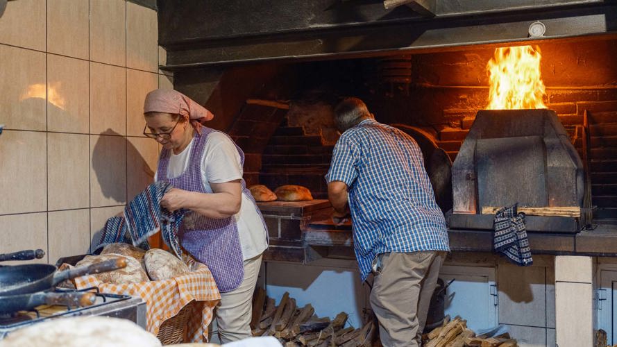 Unser nächster Halt war eines der Highlights des Tages: der Besuch bei einer Familie von Wochenend-Bäckern, die in ihrer heimischen Küche traditionelles Brot und Bolo do Caco zubereiten. So etwas habe ich noch nie gesehen - ich kann gut verstehen, warum sie am Wochenende so beliebt sind. Diese Bäcker waren seit zwei Uhr morgens auf den Beinen, um sich um ihren Teig und das Feuer zu kümmern. Der Bolo do Caco, ein weiches Fladenbrot aus Süßkartoffeln, brutzelte zunächst in der Pfanne, bevor es direkt im Ofen zu Ende gegart wurde. Wir kauften etwas zum Mitnehmen für das Mittagessen und erhielten dazu großzügig eine Kostprobe des warmen, knusprigen Brots - frisch aus dem Steinofen.