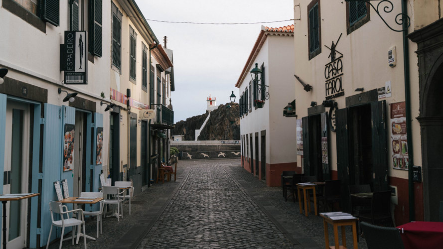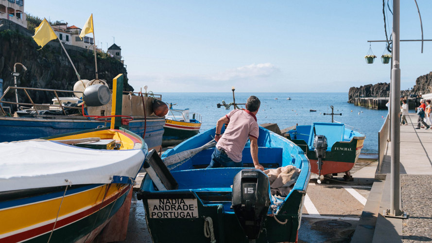 Schon bei der Ankunft wirkt die Landschaft wie aus einem Film! Das Dorf schmiegt sich sanft in die Bucht, mit unzähligen Häusern, die sich die Hänge hinaufziehen. Dazwischen: Bananenstauden auf den typischen Terrassenfeldern Madeiras, die die Hügel in ein sattes Grün tauchen - fast wie eine Umarmung der Natur für diesen Ort. Und dann ist da noch das Licht… ein Licht, das die leuchtenden Farben der Boote in der Bucht noch intensiver erscheinen lässt - als würde jede Nuance die Persönlichkeit ihres Besitzers widerspiegeln.