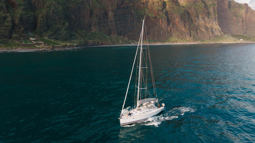 Eine weitere unvergessliche Art, den Sonnenuntergang auf Madeira zu erleben, ist vom Meer aus. Wir gingen an Bord einer eleganten Segelyacht und legten vom Hafen von Funchal ab, entlang der Süd- und Westküste Madeiras, an diesem ruhigen Apriltag … und vom ersten Moment an spürten wir, dass es etwas Besonderes werden würde.
