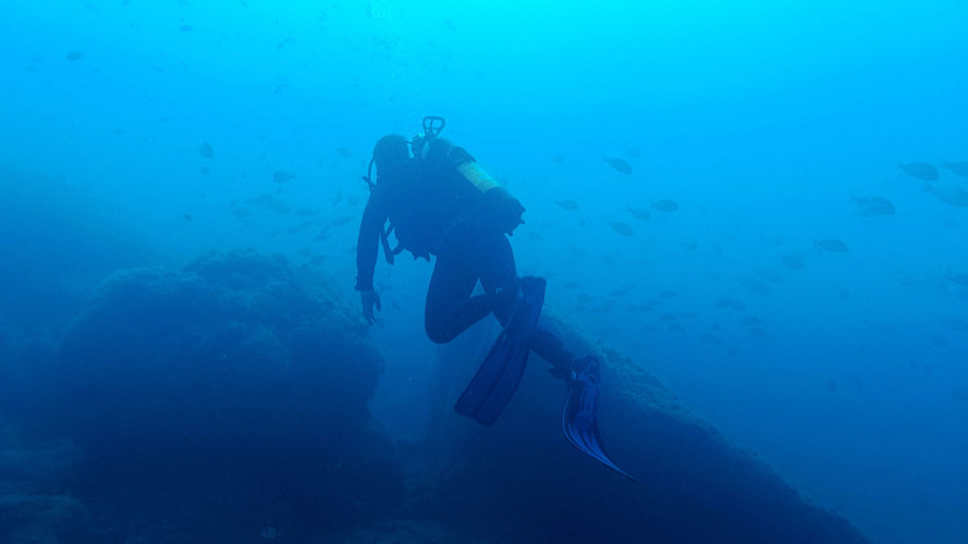 Für mich fühlt sich Tauchen an, als würde ich fliegen. Jedes Mal, wenn ich tauche, frage ich mich, warum ich so lange damit aufgehört habe - und habe sofort wieder Lust, es öfter zu tun. Was für ein unglaubliches Gefühl von Frieden und Verbundenheit mit der Welt um uns herum. Obwohl ich bei einigen Grundfähigkeiten, wie dem Halten der Tarierung, ein paar Schwierigkeiten hatte, hat das die Erfahrung, unter Wasser zu sein und von dem typischen Blau des Madeira-Archipels umgeben zu sein, keineswegs geschmälert.