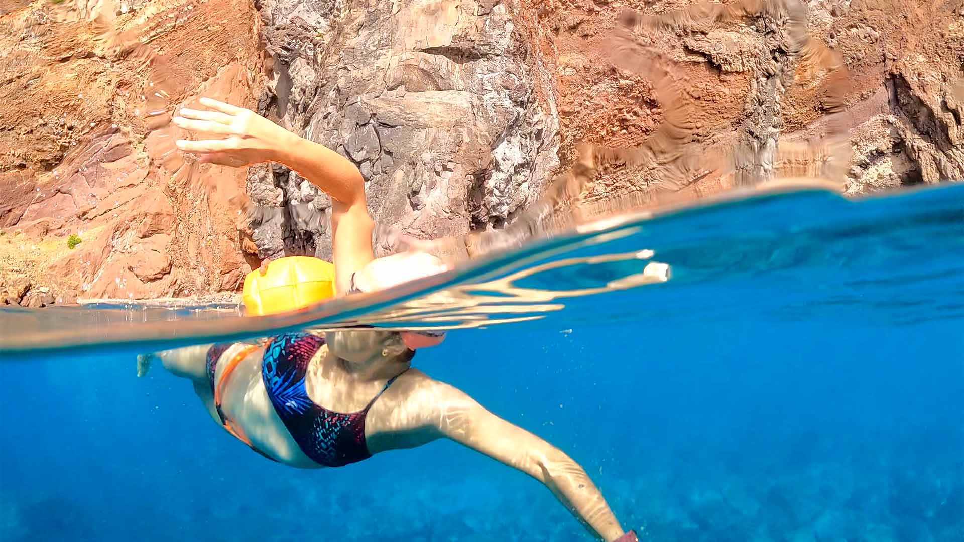 Explore the ocean by swimming in Madeira's waters, taking in the relief of the mountains that stretch down to the sea.