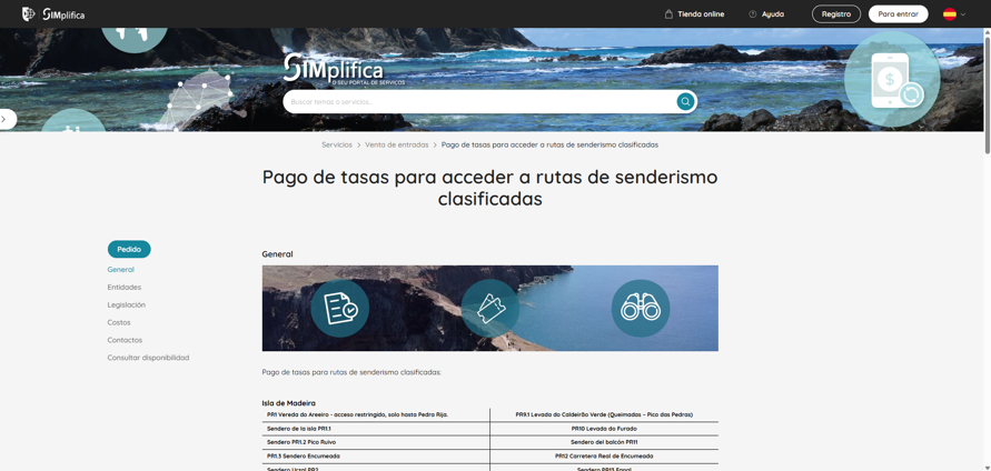Todas las reservas se realizan a través de la plataforma SIMplifica, el portal de servicios oficial del Gobierno Regional de Madeira. Aquí seleccionas tu ruta, la fecha, la hora de entrada y realizas el pago, si corresponde.