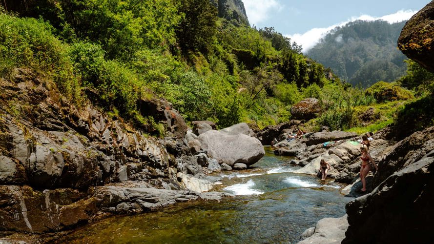 Notre conseil est d'arriver le matin, moment où on l'avait entièrement pour nous ! On a tranquillement flotté sous les montagnes, avec le soleil chaleureux qui nous réchauffait, sans rien d'autre que les bruits de la nature. Si vous cherchez à vivre une expérience bien-être à Madère, ne cherchez pas plus loin que cette oasis naturelle luxuriante, connue principalement des locaux.